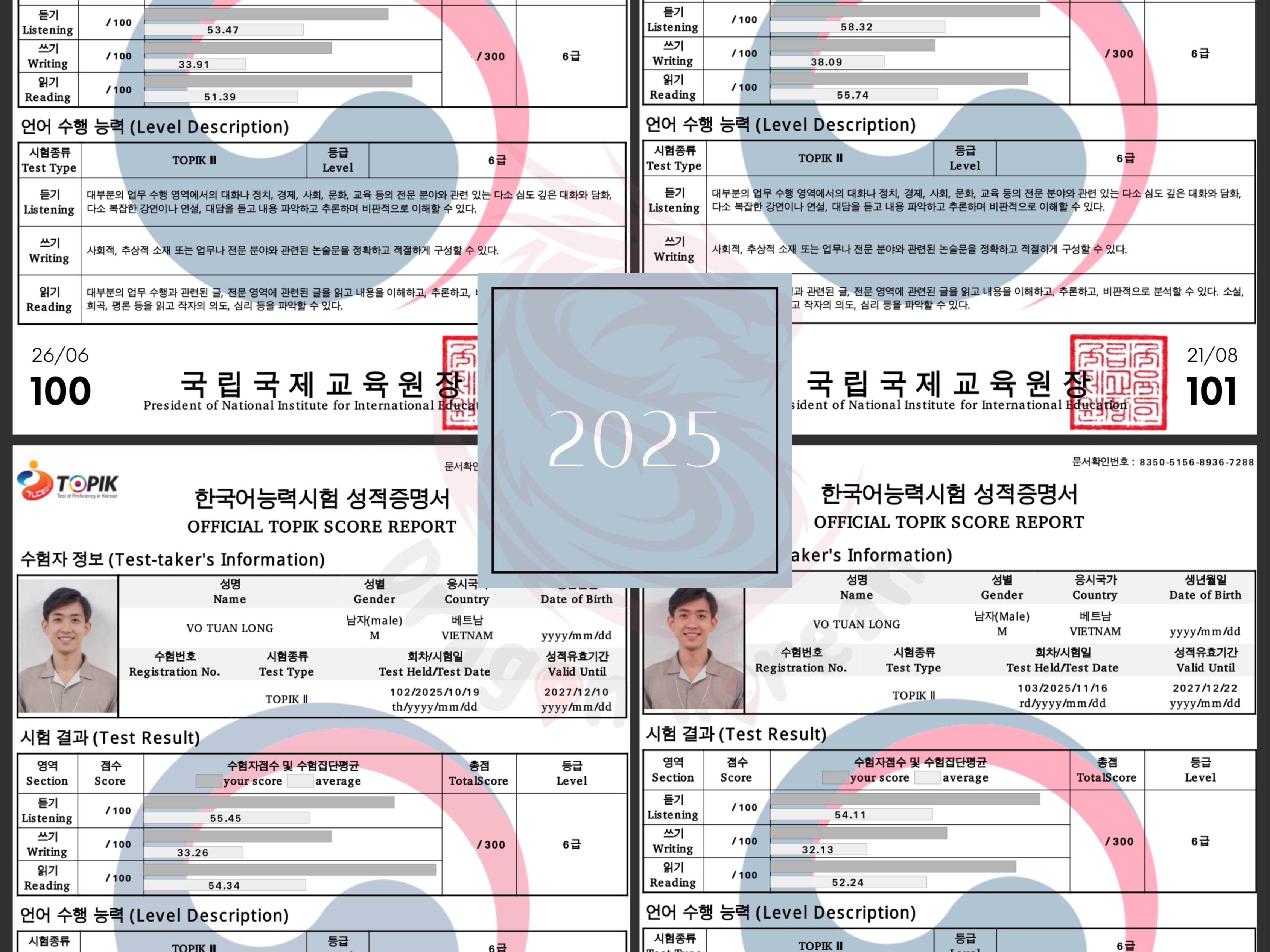 Hôm nay khép lại năm 2025 bằng tấm bằng TOPIK 6 lần thứ 4, tương ứng với các kỳ thi TOPIK 100 – 101 – 102 – 103.