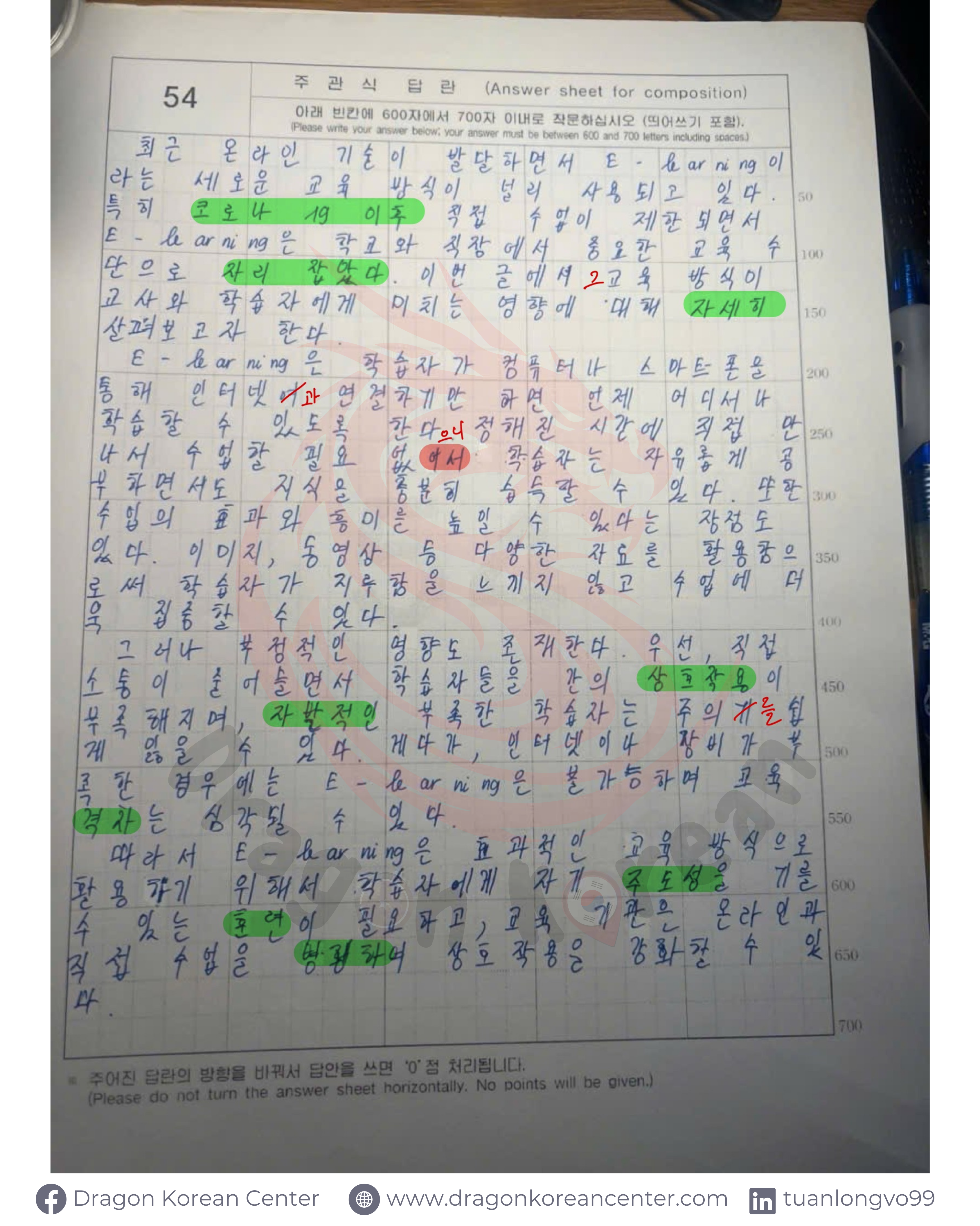 🔴 Lỗi nhỏ: Được note màu đỏ – rút kinh nghiệm để tránh lặp lại. 🟢 Từ vựng & ngữ pháp hay: Được tô màu xanh – cùng học hỏi & áp dụng! 💡
